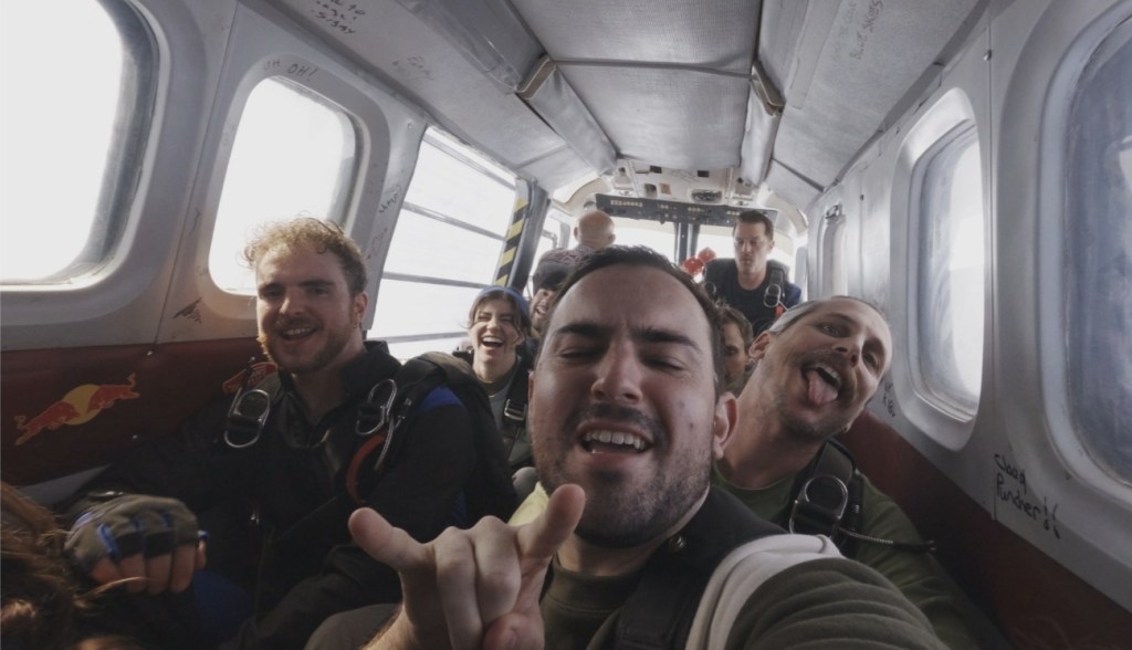 From here we hop on a plane to join a bunch of enthusiastic skydivers as they prepare to celebrate the birthday of one of their own with a mass jump in “Live And Let Dive”. But before they’re ready to make the leap, the arrival of a massive mothership means that they’ll all have to bail out earlier than they planned – but even if they survive the fall, there’s some gnarly shit waiting for them on the ground.