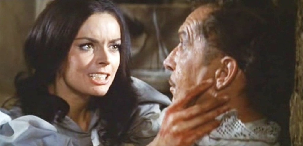 However the longer Francis stays at the castle, the more he learns that his sister’s demise was far more bizarre than some random ailment and the majority of the bad news comes from the grief stricken Nicholas himself, who claimed to adore everything about Elizabeth and blames the sordid history of his family for her untimely passing. You see, Nicholas and Catherine’s father, Sebastian Medina, was one of the more vicious agents of the Spanish Inquisition who kept a virtual arsenal of torture devices in the castle’s dungeon and after discovering that his wife and his brother were making the beast with two backs under his very nose, took bloody vengence while young Nicholas watched. As a result, the once lively Elizabeth suddenly grew sullen under the questionable influence of the castle and after accidently locking herself in an iron maiden (easily done I suppose) she promptly died of fright.