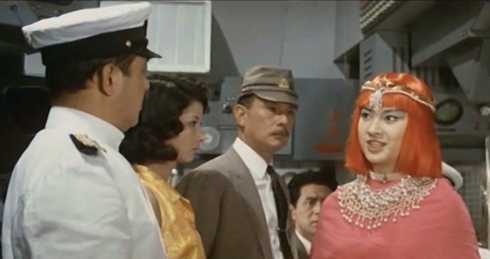 Moderately sleezy photographers Susumu and Yoshiro are on a photo shoot one night when they witness a car suddenly drive into the ocean while strange figures clad in silver are spotted bobbing in the water, but when they tell their strange story to the authorities, they are met with disbelief. However, while there they manage to eye up Makoto Jinguji, the daughter of a deceased submarine captain who is worried that she is constantly being watched by a strange man from the shadows. However, when this random group meet along with retired Rear Admiral Kusumi, things start to eventually make sense when they are almost kidnapped by an enemy agent disguised as a taxi driver. You see, it seems that the Atlantis-like legendary lost continent of Mu has decided to do more than just flourish at the bottom of the sea and has chosen to make a move to dominate the surface world with random kidnaps and terrorist acts. However, while the people of Mu enjoy the element of surprise, weapons that can destroy cities, a giant serpent God named Manda and a super-submarine stolen from the military, there’s one thing that can apparently thwart them – a secret, experimental, Atragon class super submarine named Gotengo that’s been overseen by Imperial Captain Jinguji who doesn’t seem to be anywhere near as dead as reports made out.