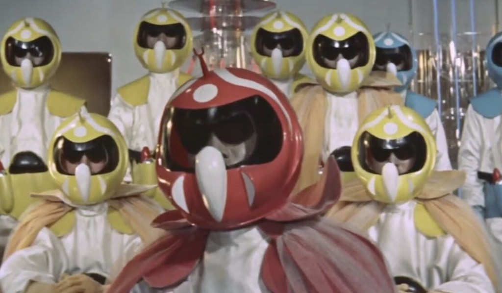 Soon, the ones responsible make themselves known and lay out some rather disturbing demands. It seems that Ryoichi’s theories were correct and these Mysterians have already arrived an built a near impenetrable base on Earth and more than this, they demand a two mile strip radius strip of land and the right to “marry” any Earth women of their choosing, which seems like something of an alarming choice when you consider that the entire race dresses like Evel Knievel has his gear designed by the makers of a Japanese game show.