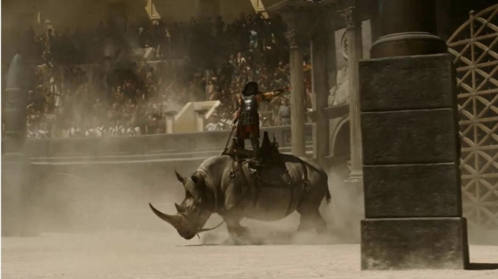 However, to just blindly compare the two is just an exercise in futility. Yes, if you compare Paul Mescal’s brooding Lucius with Crowe’s far more magnetic Maximus, or Joseph Quinn and Fred Hechinger’s screeching, ginger villains to Joaquin Phoenix’s preening and complex Commodus, the sequel is always going to come up second best to the original that’s been beloved for over twenty years – but why would you actively go out of your way to deny yourself the truth that Gladiator II is still a rip-roaring sequel that serves just as much bang for your denarii. Yes, the journey isn’t as enrapturing and the plot quite as majestic, but there are other things to keep you locked in place.