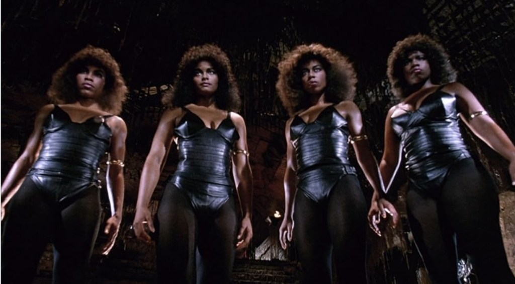 While Police Story delivered once of the most frenzied final battles in martial arts history as Chan brawled his way through an entire mall and both Wheels On Meals and Dragons Forever saw our hero engage in flawless fisticuffs with Benny “The Jet” Urquidez, Armor Of God secures it’s place in the Chan hall of fame by having him trade blows with a quartet of fierce, muscular, afroed up, black women who attempt to mess him up real bad by kicking him with vicious looking stelletos. It’s a truly fantastic sequence that may actually include Chan’s greatest punchline ever where, in the heat of battle, he drives both fists into the breasts of one of his attackers only to deliver a tiny, awkward sorry that no doubt has been included on every sizzle reel made of the man.