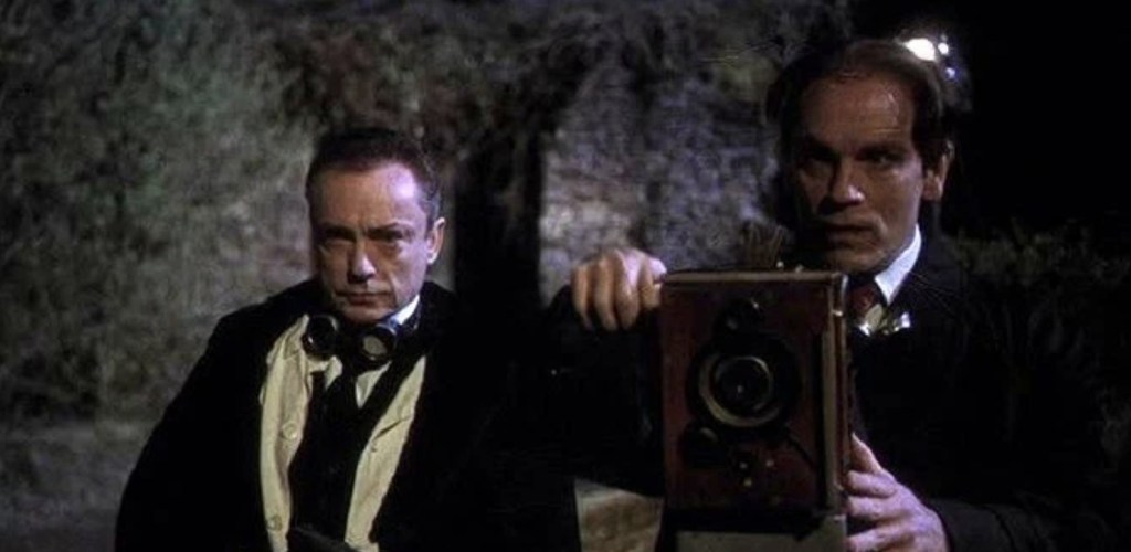 The MVPs here are undoubtedly both John Malkovich and Willem Dafoe (who nabbed an Oscar nod for his troubles), but the rest of the cast, that includes Udo Kier, Cary Elwes, Catherine McCormack and Eddie Izzard (who brilliantly recreates the more exagerated acting of the silent era almost perfectly) also desreve their flowers too. However, if Malkovich is brilliantly cast as the wunderkind, laudanum addicted director who goes to reprehensible lengths to create immortal art, Dafoe’s casting as Schreck may be one of the great, all time bangers. Similarly comedic, tragic and legitimate unnerving, he combines the physicality of the original Schreck (with the added habit of clicking his elongated fingernails like a chittering bug or snorting like some grotesque rodent creature), with the loneliness and social unawareness that Klaus Kinski brought to Werner Herzog’s remake. Lamenting a past glory lost to time and half remembered, Dafoe’s Schreck may be an utterly pathetic creature, but he’s something of a massive prick too, killing at random and making and breaking deals at will like a petulant toddler. Simply put, he’s fascinating and is arguably even a more intriguing beast than the actual Nosferatu that he’s supposed to be portraying, but Dafoe takes care not to make him a complete monster, even when he’s biting off the head of a bat like a bald, pallid Ozzy Osborne and moments were he cant help but stare transfixed of grainy, b-roll footage of the sunrise adds moments of pathos to this pathetic creature.