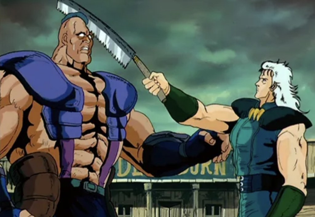 Can Ken’s way of the literally exploding fist finally see him getting justice in a world where the best way to protect your interests is to pop your rival’s head like a water balloon.