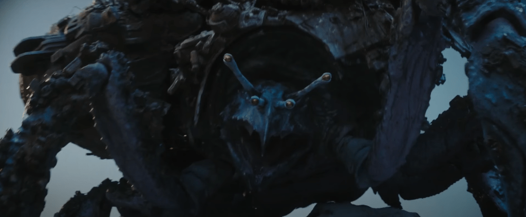 We kick of the episode, directed by Mandoverse regular Bryce Dallas Howard, by splitting the characters up and exploring new pairings, a classic storytelling trope that allows the characters and audience to learn. The kids end up a the bottom of a cliff, below their ship, and can’t agree on a plan to get back up. Fern, the self proclaimed leader, looks to the straightforward solution of climbing back up, while Wim, the wanna-be Jedi, finds some techno-hermit crabs and wants to follow them to safety.