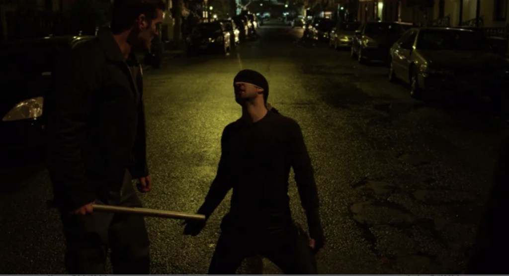 You can tell Charlie Cox is enjoying sinking his teeth into a much more cynical version of Matt who simply has lost just too much to give a shit and while he does eventually get himself up to something approaching fighting fit, it seems that his masked return to the streets of Hell’s Kitchen may be something of a bizarre suicide attempt. The show gives us a rather handy shorthand into Matt’s fractured mojo by sticking him back in his older, black costume almost to say that if he ever deserves to put on the red threads, he’s going to have to be worthy of it not unlike Thor and his hammer.