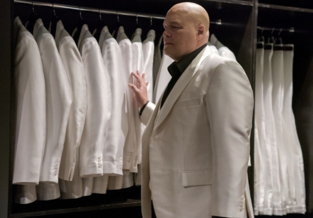 Of course, while Murdock has all but given up the mantle of Daredevil now that it’s been taken from him (even Matt says at one point that his ideals no longer synch with the classic suit), Wilson Fisk has never been more Kingpin, be it staring at his wardrobe of white suits in smug satisfaction and heading down into secret room to spy on the feds. In fact, Wilson’s been playing a blinder this season, clambering ruthlessly towards his former position over the bodies of those who would stand in his way. Although he hasn’t yet managed to achieve his ultimate goal of securing safe passage back into the United States for his wife, Vanessa, he’s certainly well on the way and he genuinely seems invincible compared to everyone else.