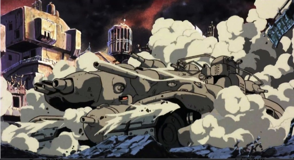 For a start, sullen, determined street punk Hiro proves to be something of a one-note hero, lacking the oafish charisma of Akira’s Kaneda and instead quietly seething his way through the entire movie while failing to collect any empathy along the way. Similarly, his gang of friends may have all the war experience of the T-Birds from Grease, but their instantly interchangeable too and after you discover some have died after a massive action sequence, I defy you to work out who has actually croaked it after it doesn’t effect the group dynamic at all. Also, why hype up the tough, take-no-bullshit character of Miranda as someone to blatently watch because she’s totally about to do something cool at any moment – and then not do anything with her at all? By this point, the plot inconsistencies start falling like rain. Why the fuck would Aphrodian leader, Donner, hop into a tank in person to fight the final battle if his death seemingly could end the war instantly? Why isn’t the movie told more from the point of view of the far more interesting Sommers who is essentially Cailee Spaeny’s character from Alex Garlands Civil War if she was played by Elle Woods from Legally Blonde? However, while Venus Wars certainly has its narrative issues, this is where that aforementioned style swoops in and levels that playing field.