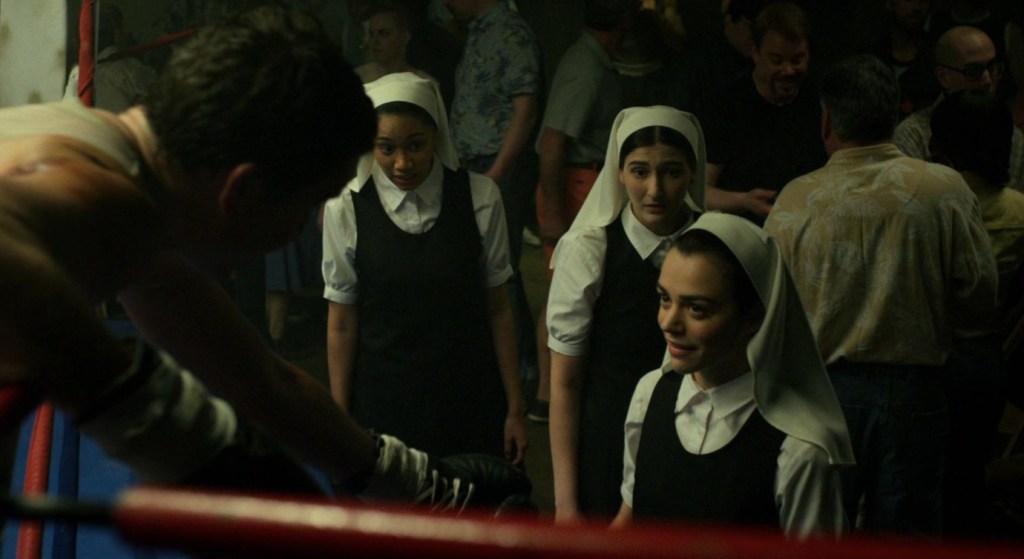 A quick flashback drinks up up to speed when a young Maggie is swayed from taking her vows when she’s wooed by sweaty, scrappy boxer, Jack Murdock during a boxing match. Before you know it, little baby Matt is born, but due to a serious bout of undiagnosed post-partum depression, Maggie gives up her baby entirely into his father’s care and returns to the church, swearing everyone, including Father Lantom and Jack, to keep her secret. Matt is pissed at the decades of secrecy and leaves his lair to hole up at a local, run down gym where his demons continue to torment him about whether he needs to break his code and take a life to halt Fisk’s schemes.