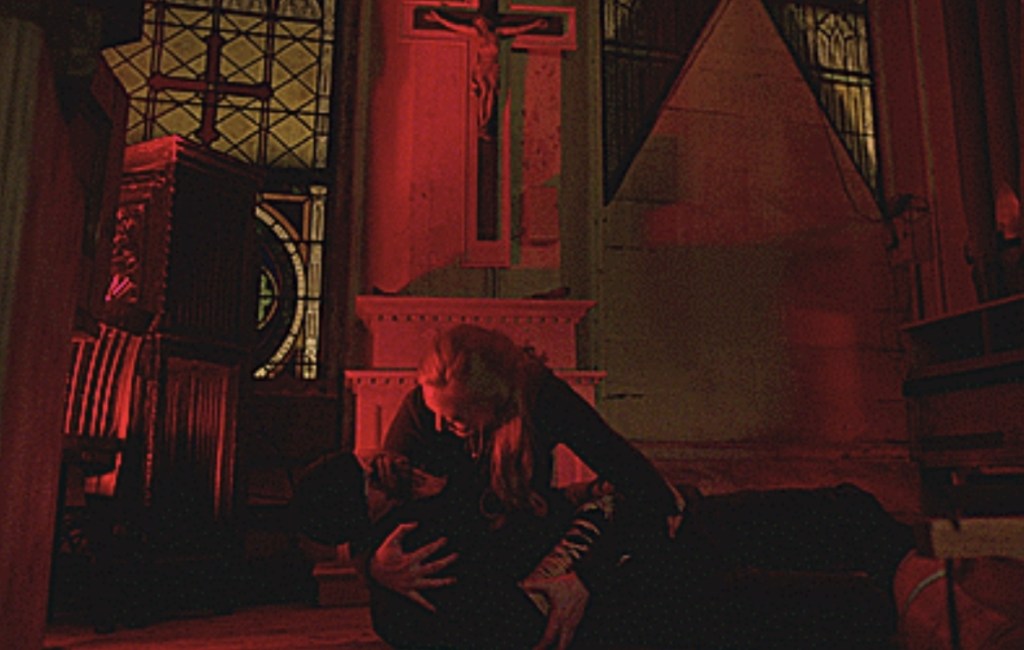 OK, so we may have technically seen it already in the final act of the 2003 movie, and here Daredevil isn’t dressed as Daredevil and Bullseye isn’t dressed as Bullseye, but apart from a few changes (Poindexter disappointingly doesn’t try to use two of his front teeth to take out Murdock’s eyes for a start), a lot of it is straight off the page. The fight is every bit at brutal as their previous scrap at the New York Bulletin and the church is painted with thick reds which add to the dread, but while it’s an AIDS suffering Karen who succumbs to a fatal blow in the comic, here she’s saved by Father Lantom who takes the hurled Billy club meant for her as penance for his sins. It’s here that all that flashback stuff makes thematic sense to try and con you in believing that Karen is due to bite it, and it’s entirely up to you whether you think it’s worth it.