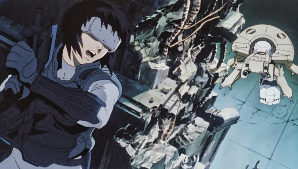 The year is 2029 (not long now, eh?) and technology has now advanced where many people have had some or all of their body parts replaced by cybernetic parts, such as incredibly dexterous prosthetic hands, super strong limbs or even bionic eyes. However, in the case of assault team leader Major Motoko Kusanagi of the Public Security Section 9, the only thing remotely human about her is her brain abd while this gives her impressive physical advantages when doing her job fighting cybercrime, it often leaves her wallowing in broody contemplating as she mulls over the nature of her humanity and the existence of her soul – or “ghost”.