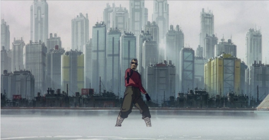 The sight of the Major escaping after the opening assassination by dropping of the side of a building, butt-naked, while activating her thermoptic camouflage in super smooth slo-mo is genuinely hypnotising. Later, the Major gets the drop on an assailant on the flooded streets of “New Port City” using the same tech and the sight of the twirling streams of water trailing from his feet after he catches a roundhouse kick to the face predates the similar visuals made so famous in the Matrix movies. However, even these pale in comparison to the truly resplendent opening credit sequence that may rank as one of the medium’s finest ever moments. As we watch the Major getting assembled piece by piece as the truly transcendent score swirls around you that weaves traditional Japanese music with hyper-futuristic visuals to create a truly unique experience that the rest of the film manages to maintain.