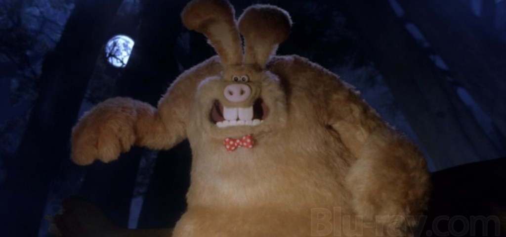 You see, when the full moon rises high in the night sky, it now causes a terrible transformation to occur that means not a single vegetable in the surrounding area is safe. Panic is rife that a large beast is prowling the streets, gorging itself on innocent crops at will and the town and Lady Tottington now look to Anti-Pesto to save the upcoming competition. However, while Wallace is making goo-goo eyes at Tottington, Gromit discover that this malevolent “Were-Rabbit” has a devastating secret. The boys had better hop to it.