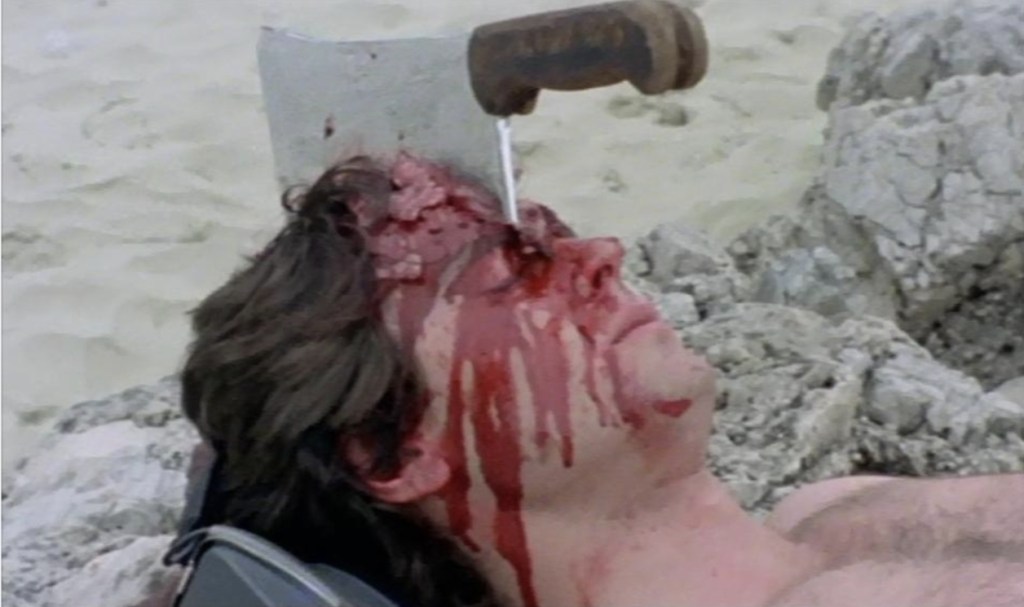 Julie is hoping to meet up with her friends who are on the island where that German couple bought the farm and convinces her new buddies to sail round that way. However, upon arriving, the pregnant member of their group, Maggie twists her ankle and has to remain in the boat while the rest of the group explore. However, while we ponder how a woman can be so lame as to turn her ankle in a slasher movie before the killer has even shown up, the mystery assailant gets to work, removing the head of the boat’s owner and making off with Maggie for possibly nefarious reasons.