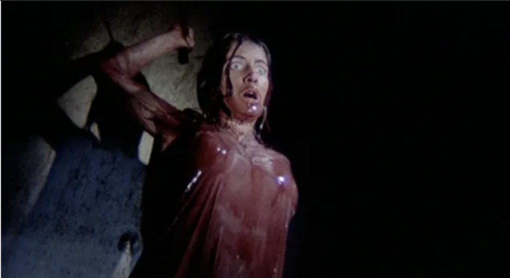 However, Anthropophagous had to have been targeted by the Video Nasties list for a reason and while the snatches of iconic gore that got it put there may actually seem rather quaint these days, back in 1980 it was considered somewhat more ghastly. Of course, there’s the numerous usual stabbings, slicings and choppings that come as standard with your average slasher pic, but the sight of Eastman’s towering ghoul slicing open a mum to be and taking a bite out of her unborn baby certainly isn’t one to be sniffed at. However, while Klaus chowing down on some literal babyback ribs may sound the movie’s pèice de résistance, but the final scene manages to top it with the cannibal killer having his stomach ripped open with a pickaxe, but instead of just simply dying, he instead starts feasting on his own guts while mataining eye contact with the leads – now that’s what I call dedication to the bit.