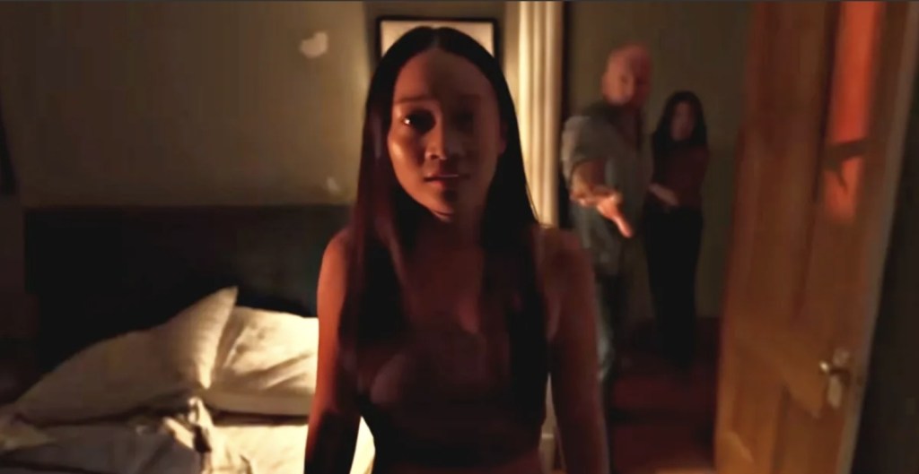 Without the benefit of traditional camera set ups and close ups to carry the emotions of the characters across, the script sketches the family in mostly broad lines with Callina Lang having to do the majority of the heavy lifting as the troubled Chole, but the rest of the family – Lucy Liu’s cold wife, Chris Sullivan’s struggling husband and Eddy Maday’s arrogant Tyler – also pitch in as they each add to the puzzle the movie very gradually pieces together. Is the final product worth it? Well, it depends on what you were expecting to be sitting down to watch.
