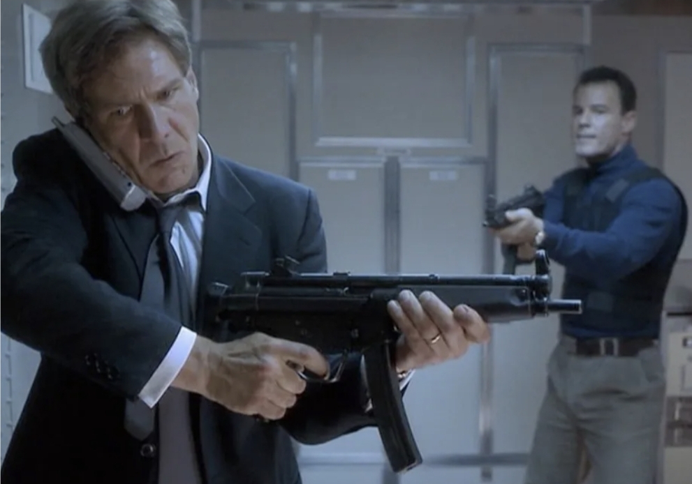 Once Marshall’s wife and daughter are on board, it’s wheels up for Air Force One, but not long after it gets in the air, Korshunov makes his move and in the bullet riddled chaos, he and his cohorts manage to take the plane only to have their quarry slip through their fingers as POTUS apparently gets away in the escape pod flanked by expendable secret service agents.