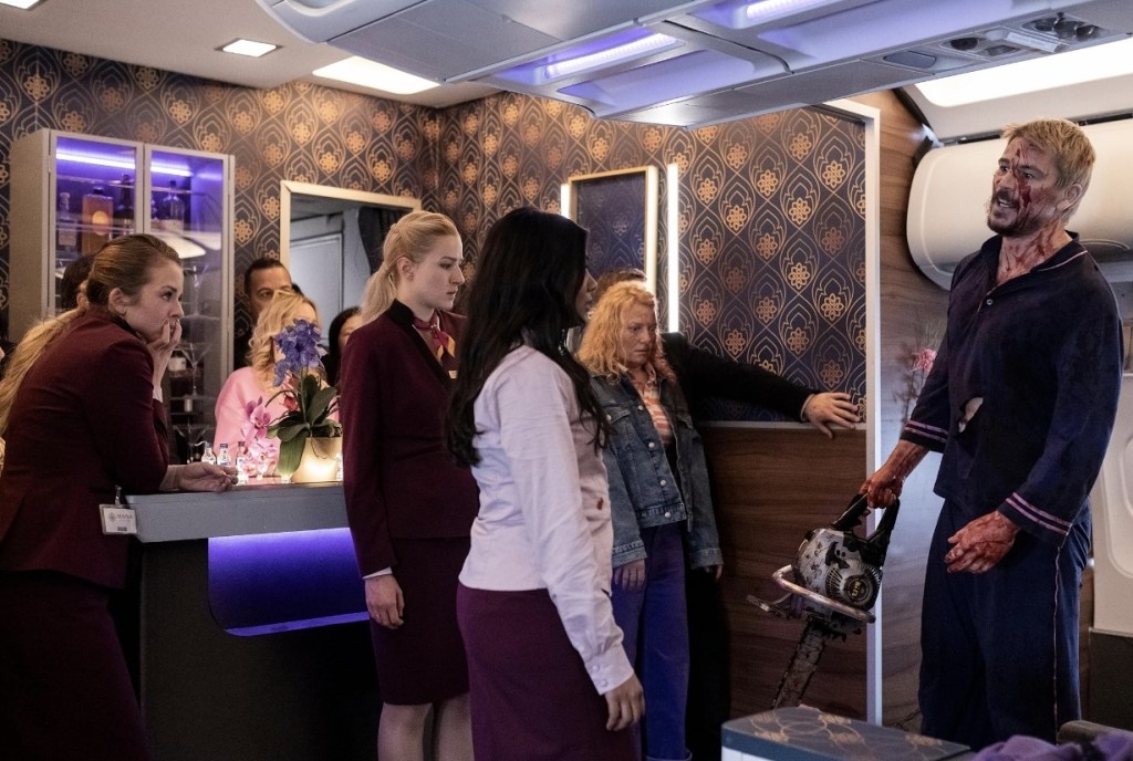 However, while the actors are legitimately having a ball, director James Madigan steps up from second unit work from larger than life films such as The Meg, Snake Eyes and Transformers: Rise Of The Beasts, to deliver hid own brand of anarchy thanks to some trippy visuals (the aforementioned toad venom) and some deliriously gruesome fights that sees volcanoes of blood spew from wounds while the rare, non-assassin passengers scream in horror. Yes, the plot is so familiar that you probably recite it in your sleep, but who cares when people are violently dispatched via fire sprinklers, ice picks and champagne flutes that require an extra headbutt to really drive it home. Actually, when was the last time you saw a baddie dispatched by being sawn in half with a chainsaw while on a plane before? Never? There’s your originality right there.
