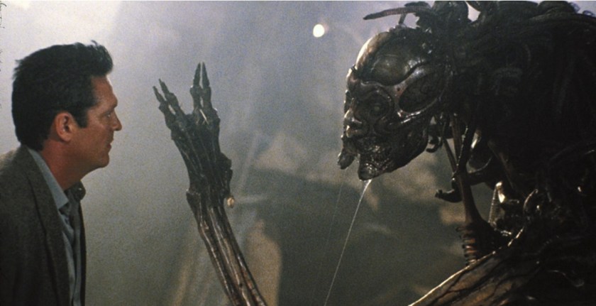 All the other actors attack their laughably shitty lines like they’re getting a 15% bonus for overacting and Michael Madsen, Marg Helgenberger and Mykelti Williamson all seem to be in a running battle to see who can come up with the most bizarre line reading that they can (for my money, Madsen only just takes it with “Welcome to the maternity ward…. from Hell.”). Also having the time of his life is FX creator Steve Johnson, who out of everyone present knows most what the movie us out to achieve and dutifully supplies numerous scenes of exploding wombs, suffocating tentacles, undulating cocoons, writhing alien bodies and a male alien who has the body type of a dreadlocked, skinned horse for some reason. The plotting may be awful and the sexual politics may be hilariously off kilter, but you can’t say you don’t get your sleazy money’s worth.