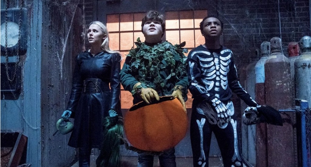 It seems the dilapidated house in question was once the childhood home of horror writer R.L. Stine and after discovering a secret panel, Sonny and Sam find an unfinished manuscript of the author entitled Haunted Halloween. Of course, no one knows that Stine’s writing has the unfortunate effect of making whatever lurks on the page leap out into the real world and after unlocking the book, malevolent ventriloquist dummy Slappy is once again free to wreak havoc on yet another unsuspecting town. But first, Slappy actually seems quite cordial as all the diabolical dummy wants is a family of his own, however, the moment he doesn’t get his own way, his true colours start to come out and he uses his funky, god-like, devil doll powers to start bringing all of Wardenclyffe’s Halloween decorations to life and have them terrorise the townsfolk while not actually managing to amass any kind of body count whatsoever – well, it is a kids film after all.