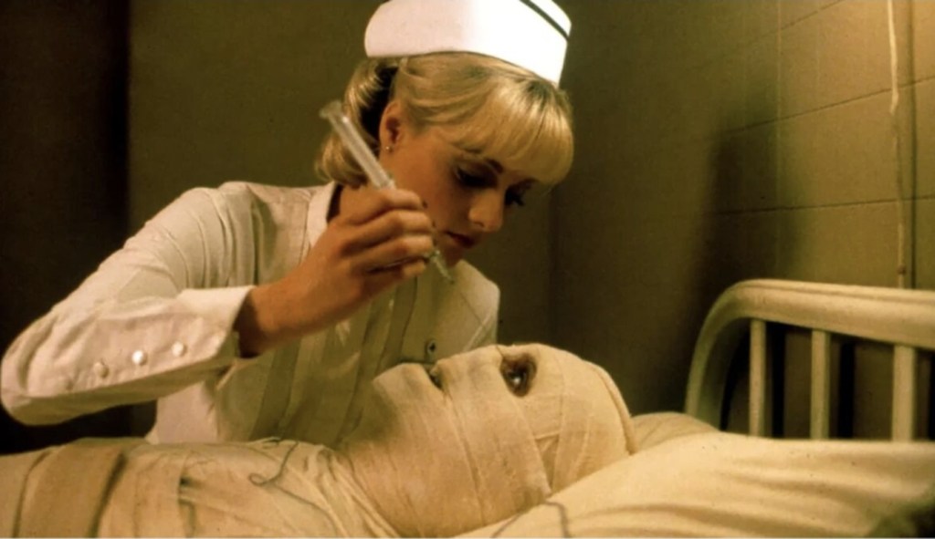 While vicious gore gags aren’t quite what you think of from the genuine that created the Terminator, the Predator and the full sized T-Rex from Jurassic Park, it turns out that the late, great, Stan the man was just as capable of dishing out unsettling murders as the likes of Tom Savini. But apart from someone have acid pumped up their nose here and having a crushed skull reconstructed there, the true showstopper is a ghastly moment where that luckless and charred dude from the opening is visited later in hospital by the woman that ensnared him in the first place and has a syringe plunged into his eyeball while he whimpers for his life. Surely this guy must be the most fucked over character of the entire decade – especially when he get resurrected to pump gas for a living.