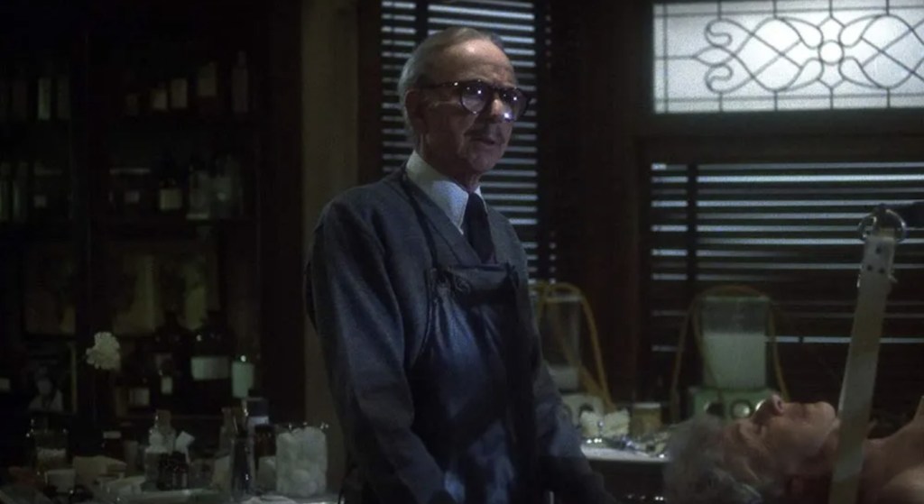 The cast all perform their roles wonderfully. James Farentino’s Sheriff barely seems able to cling onto his sanity throughout the entirety of this movie as each devestating twist brings him closer to bellowing hysteria; Melody Anderson brings those all-American, girl next door looks from Flash Gordon to bare as the local school teacher who has no compunction about teaching voodoo to her young students and on top of all that, we even have an early, pre-Freddy role for Robert Englund as a sneering local. However, possibly the most fun casting is that of Jack Albertson as the jazz loving mortician who performed the role while tragically succumbing to cancer. While it’s quite a genuine wonder image to see the man most famous for playing Grandpa Bucket in Willy Wonka And The Chocolate Factory, essentially play a lunatic whose greatest joy is to rebuild a mauled human face, the fact that he was actually dying at the time gives his villainous rants some truly impressive gravitas, even if his dastardly plan is nuttier than squirrel shit.