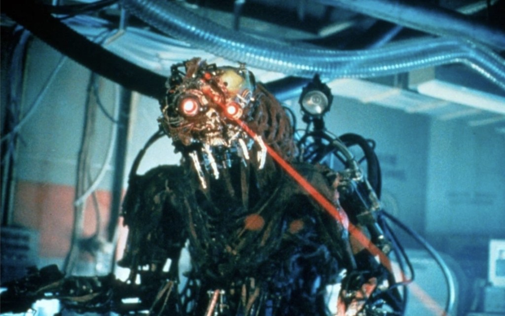 It’s a shame, because while Virus falls down on almost every conceivable level, it does boast some primo, techno-body horror that goes above and beyond. While the film starts small with hand-sized robo-spiders that scuttle all over the place, we soon graduate to fucked up, humanoid/robot zombies who clonk around the ship waving machine guns in order to do the alien AI’s bidding. What is most gratifying about these creatures is that for the most part, they are realised by full-sized animatronics delivered by Steve Johnson who had quite an unfortunate talent during the 90s for providing expansive effects for movies that didn’t really deserve them.