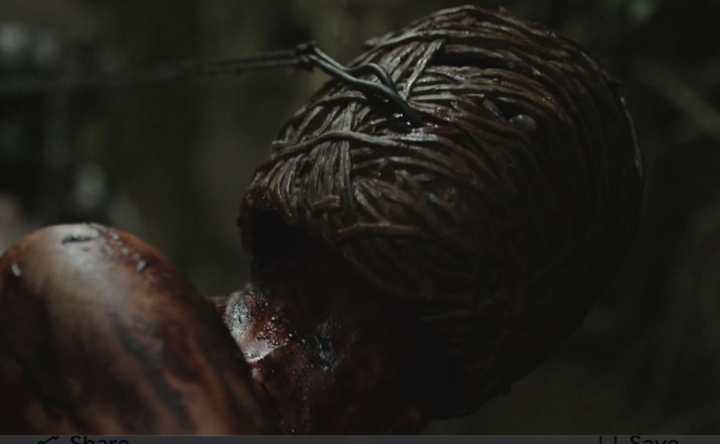 It’s here that we put aside all the threads of man subverting religion, gods being held hostage (metaphorically and literally) by their followers and metaphors about how we’re kicking the living shit out of mother Earth – all relevant by the way – and focus on what happens once Evans drops the dread and gives us the horror. Some may find this aspect of the film rather random and uneven as if Evans is just casually throwing in arbitrary horror images to build up the scares, but personally I found the haphazard nature of their actually having a supernatural presence in the film gave it a ragged unpredictability that made it feel like a throwback to anything-goes, 80s horror literature. Of course, when the blood is eventually spilt, Evans predictably doesn’t hold back, providing a people grinding machine, a spectacular gutting and a showshopping brain boring device that works hard to keep you uncomfortably shuffling in your seat.