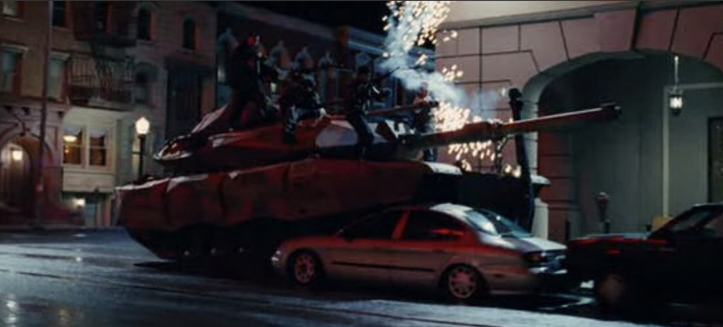 Now I’m not saying that the former member of NWA can’t handle himself if things got physical and I’m certainly not saying that the man lacks charisma, but the fact we’re supposed to believe that Ice Cube was a Navy SEAL when he’s built more like baby seal is only the first of many audacious acts of bullshit this movie demands you swallow and each one proves to be funnier than the last. As the film progresses, it becomes clear that Darius Stone is supposed to be the ultimate badass who can do literally everything except change his one facial expression which remains locked on his trademark sneer. He literally enters every scene with the same energy no matter what it actually requires – action scene? Sneer. Exposition? Sneer. Romantic moment? You best believe he’s coming in hot with a sneer and it soon becomes hypnotic. The action also comes with that “urban” twang as various vehicles are carjacked in order to save America including two tanks on two completely separate occasions (tank jacking sounds utterly filthy when taken out of context). But even when Darius is engaging in some sort of impossible fuckery, he still acts like he’s in the preamble of a music video as we waits for his rapping to start.