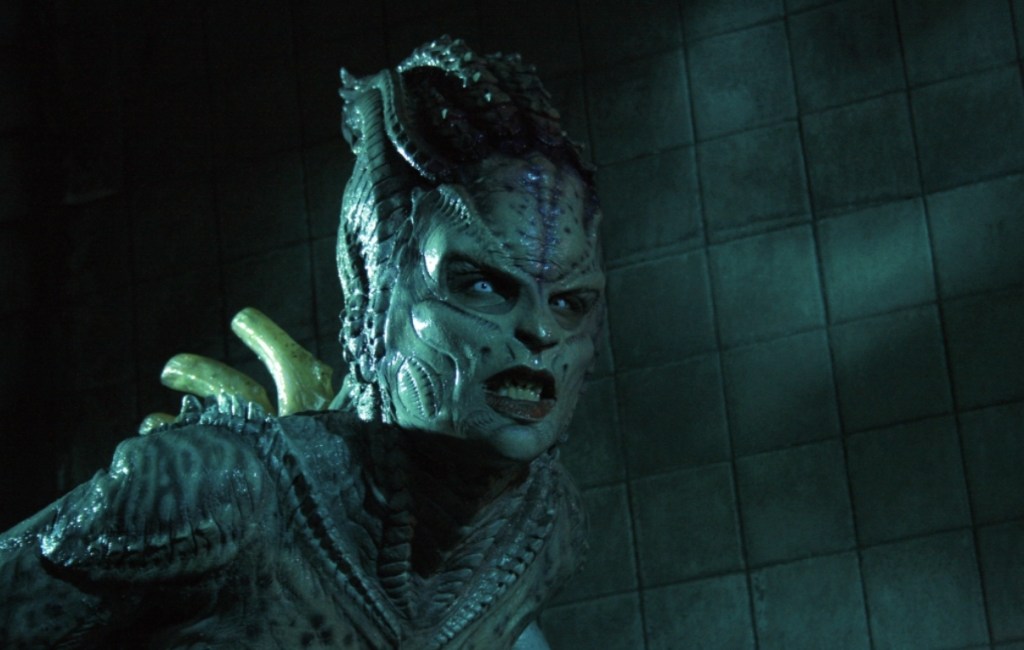 The key here would have been Dominic Keating’s ludicrously amoral scientist who spends his time mincing around his lab, drawling in a thick Australian accent and fucking his nubile, alien creation like a Lovecraftian Russell Brand. Taken seriously, his character is a grotesquely silly joke that makes no logical sense, however, if director Nick Lyon had some of that crazy juice that 90s horror mentalist Brian Yunza was drinking back in the day, we could have gotten a gooey sci-fi blowout that could have genuinely impressed. As it stands, there is some genuinely strange shit going on here – for some reason, alien-with-benifits Azure feels the need to assassinate Tom when he first gets to Mexico by dressing up as a nun for reasons that are never explained; at one point one of Forbes’ escaped freaks also tries to kill Tom by sprouting a crocodile mouth despite apparently managing to hold down a job as a taxi driver; oh, and let’s not ignore the fact that movie containing numerous literal illegal aliens has just so happened to be set in Mexico – real subtle, fellas.