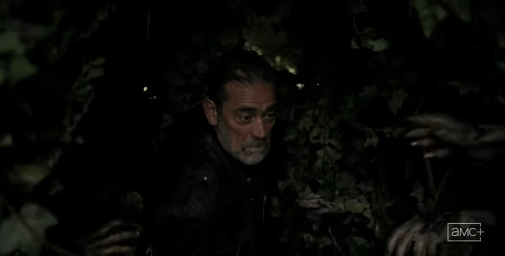 However, despite all of this, Why Did The Mainlanders Cross The River? may not be entirely satisfying, but it isn’t boring either and the fact that the season refuses to sit still means it’s still watchable even if you’re not entirely hooked on what’s actually happening. Maybe my “whatever” attitude comes from years of being a slightly jaded Walking Dead fan who seen the show make the same mistakes over and over, but I just still can’t quite write it off. In fact, a sequence that sees Negan have to push his way through a tunnel that’s lined with Walkers trapped and entwined in overgrown vines as as strong and nightmarish an image as the show’s ever produced.