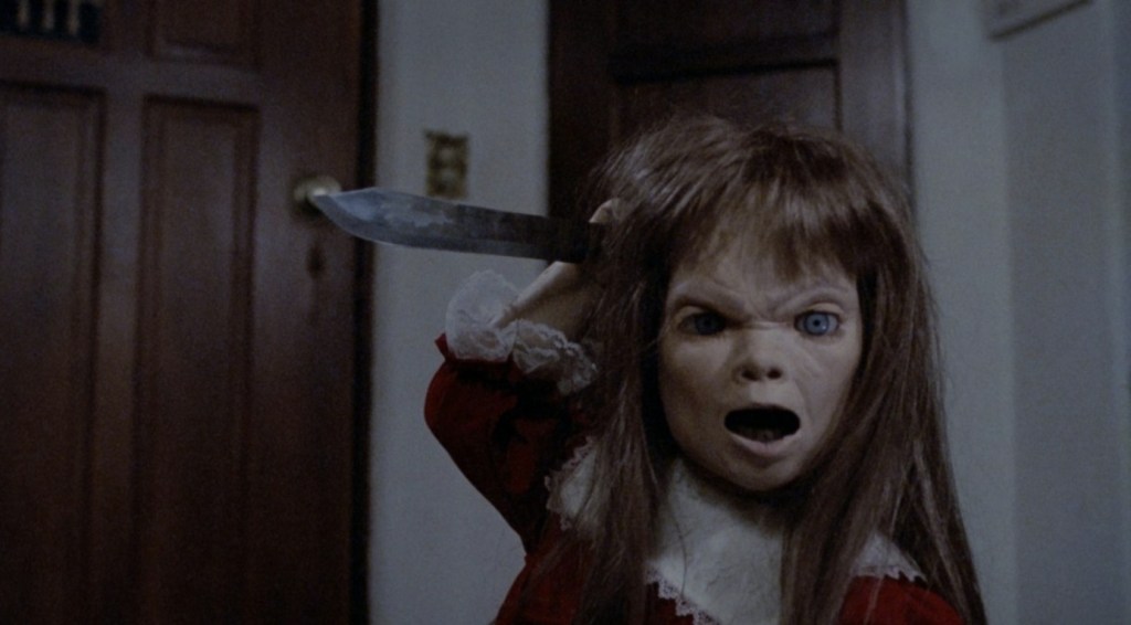 However, this proves to be an incredibly bad thing, because just down the road from the factory is a freshly breached Mayan tomb that’s released the evil spirit of a demon child known as Sanzia who promptly takes up residence in – you guessed it – Dolly. But while Marilyn bears the brunt of her daughter’s sudden personality change that includes everything from speaking in tongues to violent rages, the various Mexican staff members surely get the worst of it when they start meeting their ends in freakish “accidents”. However, thanks to the arrival of archeologist Professor Resnick who has turned up to pick around that old tomb, a precocious Jimmy starts putting some of the pieces together.