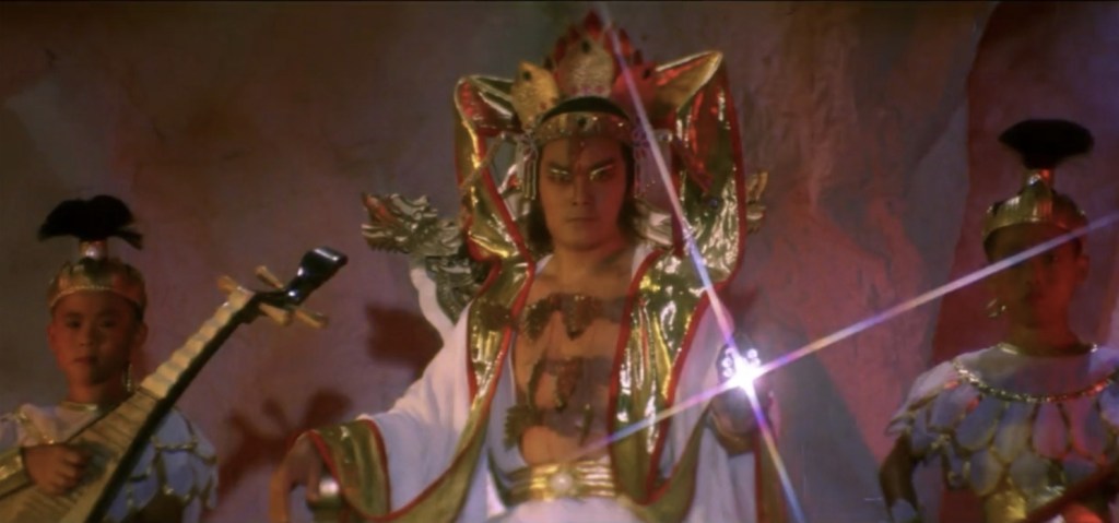 The minute Joey shows up in the Black Paradise in front of a devil who looks like he’s about to head out and celebrate Pride, things take a phantasmagorical shift from your typical, Shawn Brothers type epic into something far more off kilter. For example, watching Joey’s living necklace of demon skulls suddenly fly off his neck and start circling the room like Satan’s Aerobie, they then detach and zip about the place, fastening themselves to the jugulars of their victims like the spheres from Phantasm. But it doesn’t stop there as those Skull often assume human form as a trope of child acrobats that giggle incessantly like Evil Dead Deadites as they flip and tumble about the place like a bad trip at a Cirque du Soleil Vegas show. While your brain is struggling to process this, Cheh also mercilessly assaults you with frantic disco lights and a piercing soundtrack that disorientates you so much, it feels like you’re watch the Kung-Fu equivalent of getting tortured at Guantanamo Bay. Of course, with the atrocious dubbing laid on top of that, what you end up with is a full blown freak out that tops the madcap scale and will no doubt utterly confound anyone not up for the experience.
