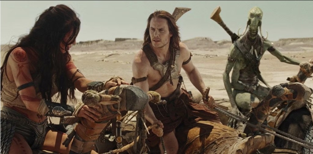 Former Confederate Army Captain John Carter is tired of fighting other people’s wars and has now dedicated his nomadic life to discovering enough gold to afford him the life of living separate from the rest of the world. However, the grizzled soldier turned prospector finds way more than he bargained for when a run in with the cavalry sees him stumble upon a strange cave loaded with gold and a strange, bald being who is shot dead by Carter in self defence. After touching a strange medallion on the dead man’s person, Carter suddenly finds himself transported from Arizona territory to the planet Barsoom (which we know as Mars) and a whole new chapter of his life begins.