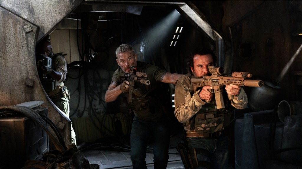 But maybe I’m starting to get a little soft in my old age – because for all of its remorseless recycling, the fact that director William Kaufman is adamant that as much of this film is done practically manages to atone for a lot of sins. The eyeless aliens make up for their evident lack of peepers with snarling mouths and huge flaring nostrils that take up most of their face while making them vaguely look like the villains from Galaxy Quest, and I’m reminded of a similar setup in the form of last year’s werewolves – another scrappy genre film that won me over by having dudes run about in hand crafted monster suits. Kaufman is hardly a household name despite helping a ton of DTV action schlock (including The Marine 4), but he proves to be quite talented at staging extended military shoot outs and more headshots than a screening of The Departed stuck on repeat. However, with a lot of the shootouts becoming a little too repetitive and thus creating a thoroughly unnecessary 105 minute runtime (surely a crisper 90 minutes would have been perfect), it unfortunately becomes too difficult to grant it anymore goodwill than I already have.