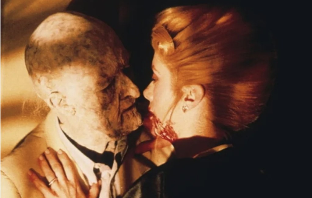 While the critics had their own fangs bared for The Hunger’s lush style back in 1983, these days letting yourself get swept up in glossy production values is all part of the fun – especially when they prove to be sharper than Deneuve’s right angle shoulder pads. Both she and Bowie prove to be as effortlessly ethereal as you’d expect in their blood drinking roles and it’s still oddly startling to see Sarandon juggling a scientist role, a vampire/bisexual transition and a crumbling relationship all at the same time, but it’s obvious that they’ve totally bought into Scott’s occasionally wistful, frequently brutal vision. It also helps that The Exorcist’s Dick Smith is on hand to offer up some truly extraordinary old age makeups as John leaps from thirty-something to octogenarian in the space of a single sitting in a doctor’s waiting room (we’ve all been there), and the climax that sees Miriam’s past lovers rise from their tombs to dustily lash out at the object of their doomed affection feels like the end of an E.C. horror comic re-envisioned as soft core art.