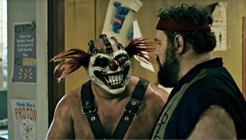 Ever play a tournament-based video game and wonder where the battle frazzled combatants stay between bouts of brutalising each other? The makers of Twisted Metal sure did and even though the main crux of the episode is Dollface’s death and the choice of John to go against her wish to bring her back, the bulk of the episode is seeing a clutch of lethal psychos finding out they’re all going to bunk together at Jaffe Campbell High School. It’s actually facinating to watch the weird admin of the non-fighting portions of a video game explored and the show even gives the racers a cafeteria and a selection of sandwiches to choose from like they’re at recess.