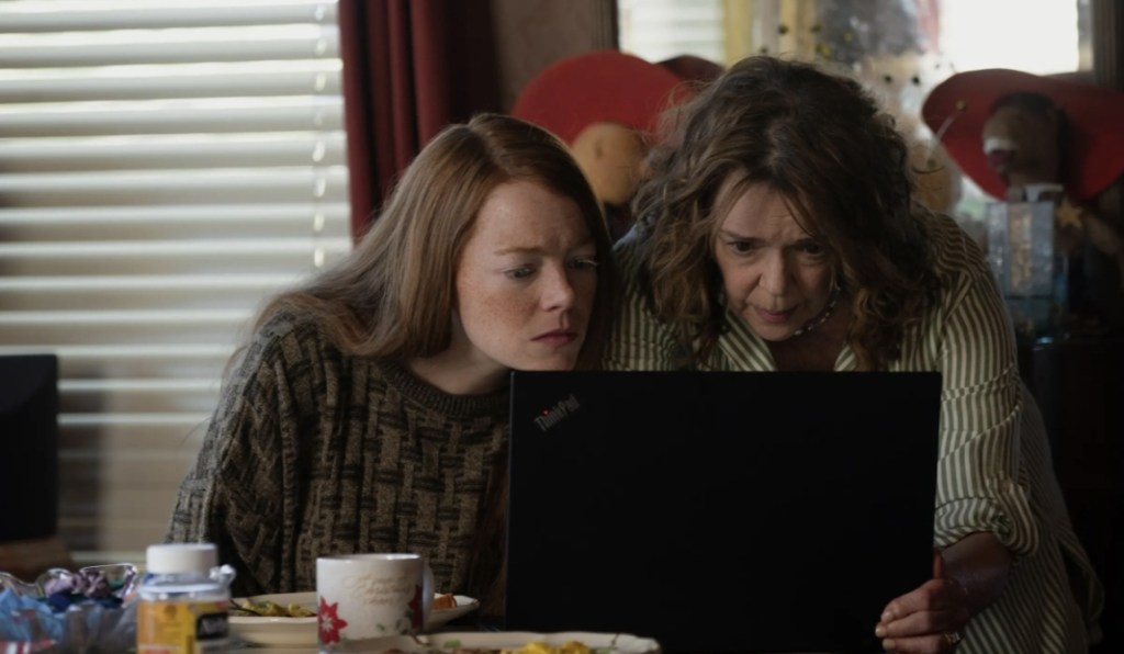 The ensemble all do their part to play the various cogs in this fucked up machine and heading the charge is Joaquin Phoenix as the emotionally feeble who delivers a performance that looks and sounds very much like Jeff Bridges desperately struggling not to cry and in comparison, Pedro Pascal (in approximately his 362nd role of the year) is a bastion of frustrating calm who seems to want to keep everyone safe when his plans to build a data center outside of town would most likely negatively effect his constituents. Elsewhere we find the likes of Emma Stone looking creepily like Sissy Spacek from Carrie as Joe’s incredibly delicate wife, Deirdre O’Connell as her tyrannical, conspiracy obsessed mother and even Austin Butler in an extended cameo as a radical cult leader and at times, you can see Aster’s old horror roots peeking through each of these individuals, especially in the bizarre, malformed, cuddly toys that Louise knits for sale.