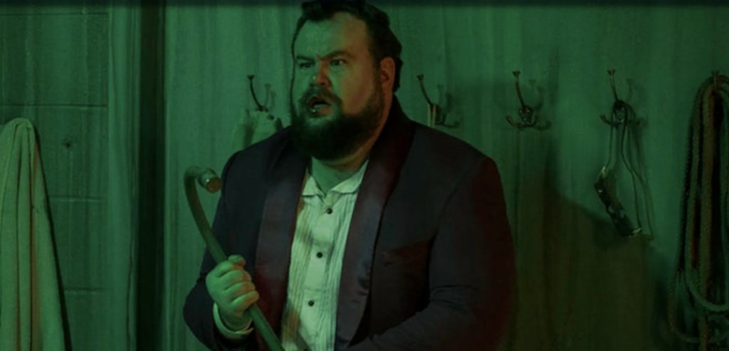 So, to reiterate, VAVAVUM has absolutely no car fights, minimal gore and once again remains entirely confined to the interiors of the school, but unlike SDDNDTH before it, it takes those parameters, takes stock of the characters it still has to play with and instead gives us an episode that not only may be one of Twisted Metal’s stronger comedic entries, but also delivers on that big, beating heart the show relies on from time to time. The result is a textbook example how to keep a show moving if you can’t fall back on the main story thread (again, car fights) and you have to rely on your characters. Virtually everyone benefits – well, except for Dave who gets his eye fatally popped by a coat hanger – and there’s even some surprises in there that prove to be just as unexpectedly moving as they are darkly funny. Plus, it also helps that not only are the script and actors on fine form, but the costume department also does some incredibly funny work when giving the freakish cast a demented glow up. Be it giving Vermin a prom dress that looks like bug wings, to kitting put Mike and Dave in the orange and blue tuxedos from Dumb & Dumber, to simply putting Axel in a pique bib and bow tie and leaving the rest of him shirtless, there’s more imagination in this single department that there was in the entirety of the previous episode.