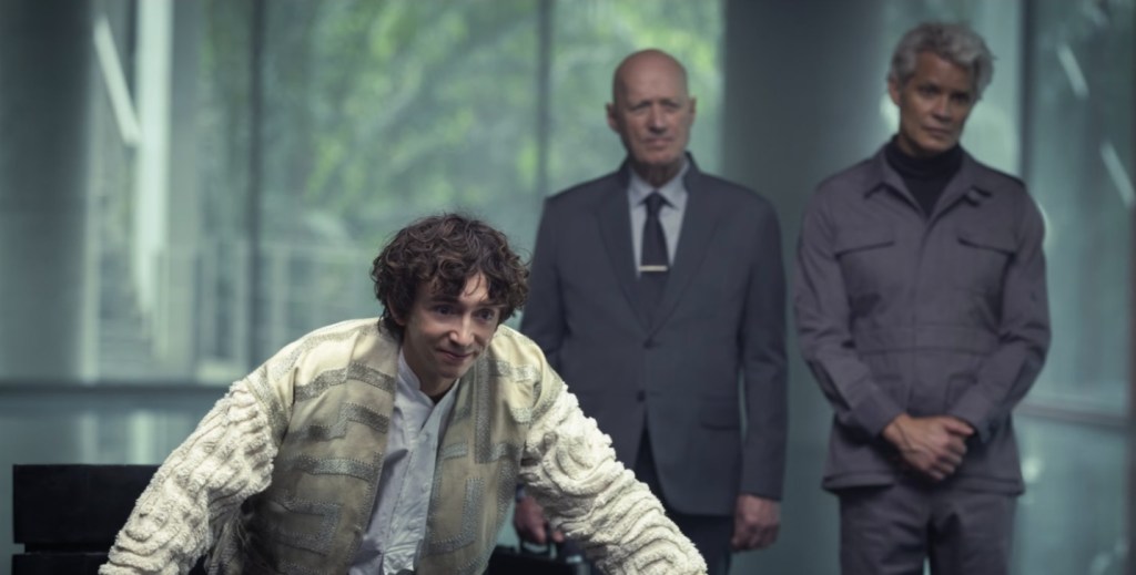 However, before we focus on the true stars of the show, its also interesting as we get to watch some other predators do their thing in their natural habitat. Boy Kavalier may be the most punchable character on TV this year by a sizable margin, but watching him bulldoze over Yutani after putting on an impressively dispectful display of rocking up to the meeting in bare feet and sitting on the board table, you have to admit that the little shit has the moves. But while he walks away the technical victor, there’s a far more tantalising rivalry building thanks to some elevator-based trash talk between synthetic Kirsh, and Cyborg Mr. Morrow. However, what makes this especially interesting is that while the latter finally goads Slightly into doing his horrible bidding, the former is fully aware of what is transpiring, but is choosing not to intervene for reasons best known only to himself.