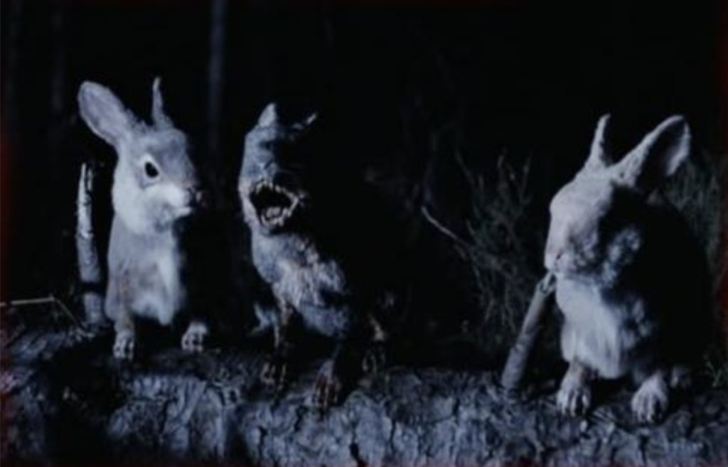 However, one thing that greatly benefits the movie is the fact that Bambi’s CGI looks pretty fucking good for a low budget horror film as the eponymous beast gores, decapitates and bisects his victims with reckless abandon. In fact, the kills are pretty good too and actually involves some good set ups and even better delivery. One poor fucker is inadvertently dragged behind a camper van until his face is ground down to the bone, and in the film’s best moment l, we even get a fun cameo from a chemically mutated Thumper as another character is taken down by flesh-eating rabbits much in the same way Peter Stormare bit the dust in the first Jurassic Park sequel.