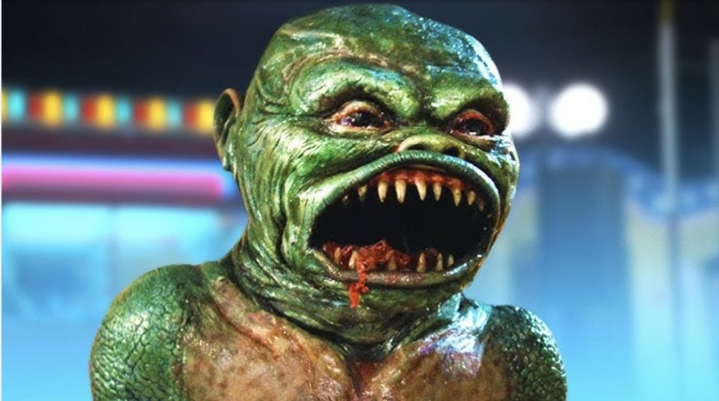 Oh, don’t get me wrong, a lot of Ghoulies II is trashy stuff on a purely camp level with uninteresting human characters that get in the way of the hot, Ghoulie action. But every time the vanilla leads start to overstay their welcome, Royal Dano wanders in playing a drunken, ex-magician, or the Ghoulies push the mostly childish tone to the limits with some oddly spiteful deaths. One woman is pinned to the floor while the creatures maul her hands and feet and is slashed with a straight razor feet, while another poor sap finds himself stabbed with a switchblade and chained to a table while a prop pendulum slices him in two. There’s a rather sweet attempt by the film to bemoan the loss of the innocence of days gone by as modern audiences are more likely to sneer at things like the old fashioned carny way of life and the decision to set the film in such a location is legitimately inspired considering other franchises seemed desperate to hurl their title monster into the big city or space.