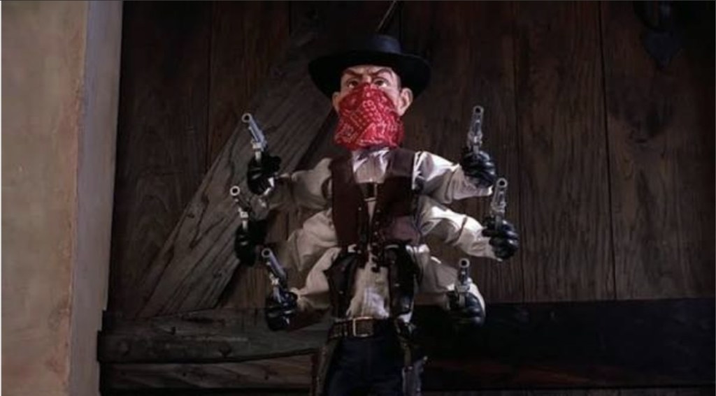 The year is 1941 and even though the Nazis have Berlin locked down pretty tight due to the cruel actions of Major Kraus of the Gestapo, kindly puppeteer, André Toulon and his wife, Elsa, put on satirical shows for children that feature a Puppet Fuhrer getting shot to death by a six-armed cowboy puppet named Six-Shooter. Unfortunately, the show is attended by Lieutenant Eric Stein who not only is a puppet enthusiast, but is Kraus’ driver – but before he rushes back to his boss to grass Toulon up to his sadistic boss, his spying also uncovers that the dollmaker’s cadre of puppets are actually alive after being “fed” a green, liquid elixir.
