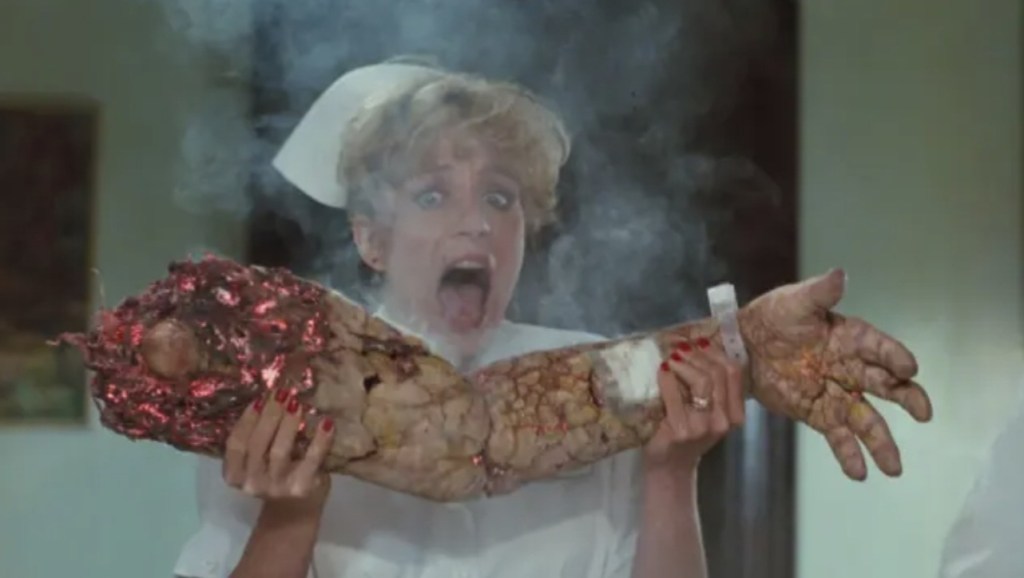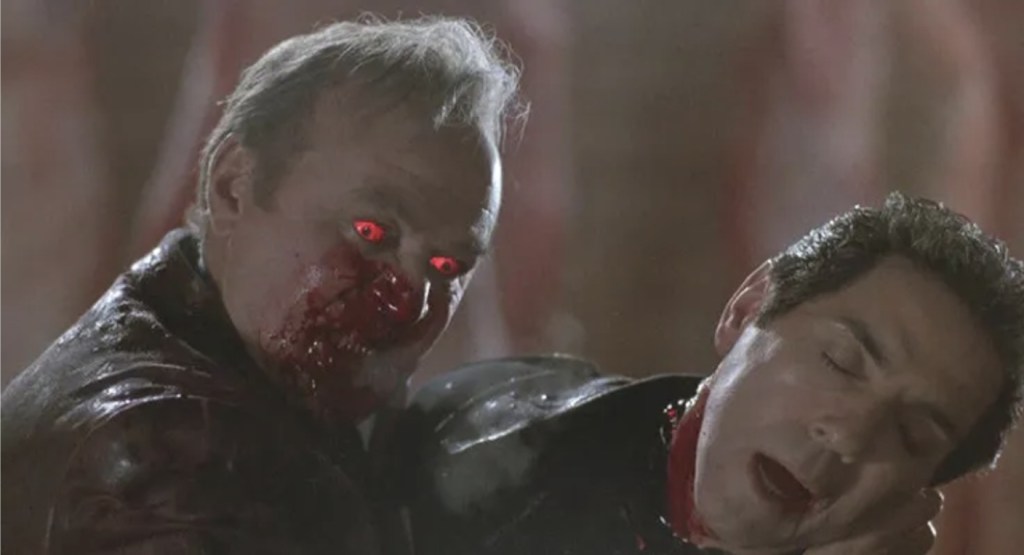 It also doesn’t help that Anthony LaPaglia’s hero is kind of boring compared to all the ghoulish goobahs and wacky bloodletting that Landis sprays around and while Anne Parillaud’s vampiric Maria is suitably slinky and ferral when needs be, her French accent is so thick it manages to make most of her dialogue virtually unintelligible.