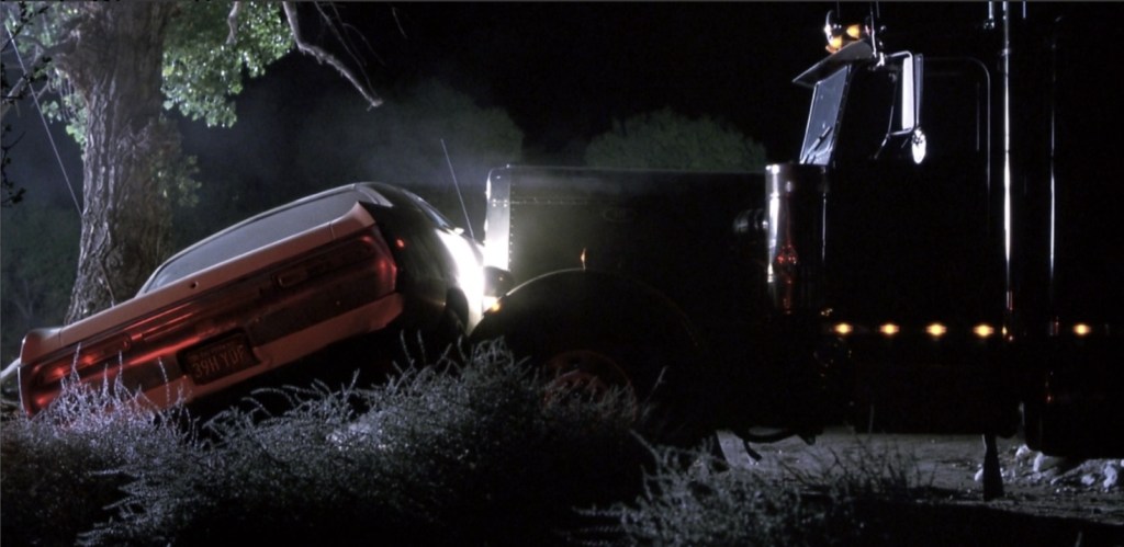 Helping matters immensely is the fact that Joy Ride is one of those rare movies that’s smart enough not to overstay its welcome and as a result is a tight as a damn drum. Everything ticks along with Hitchcockian precision as all the factors that will eventually lead to automotive disaster fall into place with impressive neatness. Establishing that Lewis is easily led falls, domino style, into Fuller being a dick, the buying of the CB and that triggering practical with liquid smoothness and even the severity and terrible logic of Rusty Nail’s vengeance is given ample time to breathe and maneuver as to avoid making the horror stuff feel weirdly instantaneous and one note. When the film needs to make an impact, it does so without resorting to wild gimmicks – hearing the attack on the guy in the hotel room and then seeing the jawless aftermath of Rusty Nail’s victim later is far more haunting than witnessing the act of violence itself.