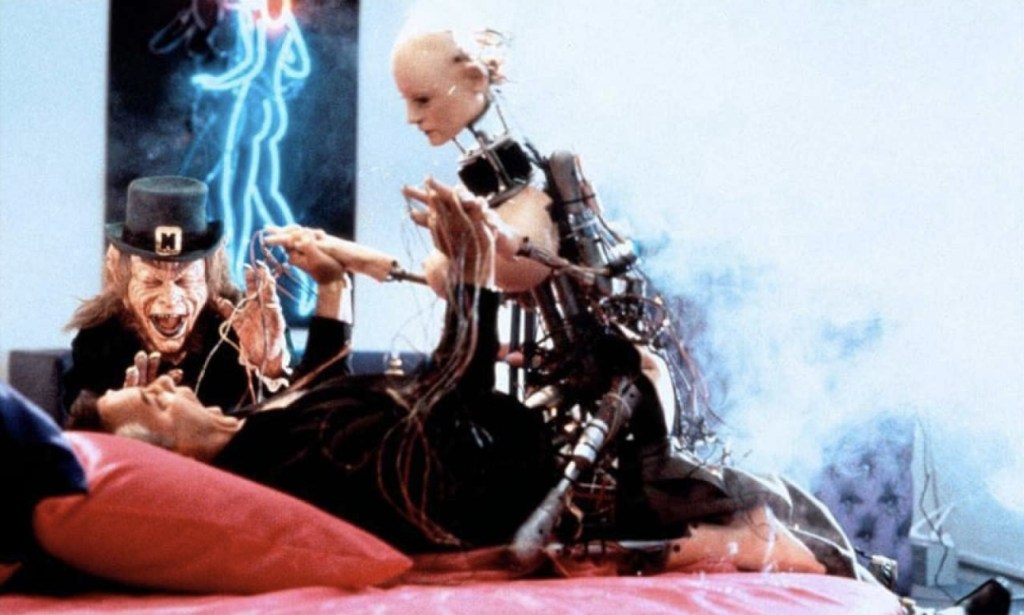 Still, all we really want is for Warwick Davis to have fun while his lecherous Lep orchestrates some ludicrous murders. Some work really well with Texas Chainsaw Massacre 2’s Caroline Williams finding that her quest for good looks are doomed when her lips, ass and tits are magically inflated until they burst; but others – such as the moment when the sleazy casino owner suddenly finds the dream woman who has emerged from his TV has turned into some massive boobed sex robot that promptly electrocutes him – is just fucking weird. However, if the gag involving Scott’s medical result simply being the phrase “fuck you” written in shamrocks makes you chuckle, you may just be onto a winner…