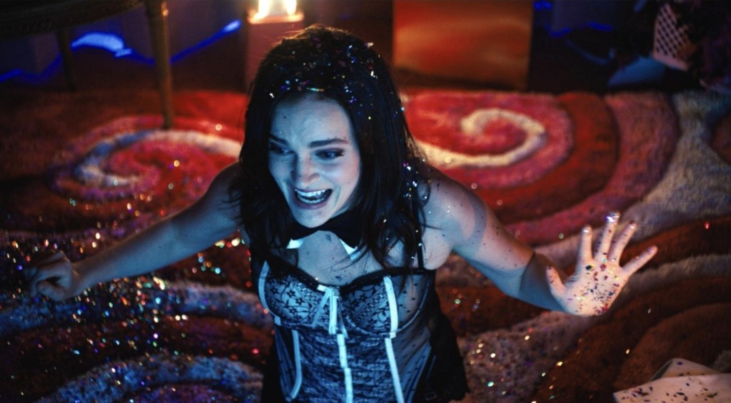 Simply put, the live of a camgirl looks pretty fucking awful, but the movie abmirably puts a lot of focus into just how fucking hard doing this is. While some would understandably dismiss making a living this way as not having a real job, the fact that Alice has to pay for the set up and keep coming up with new content all the time to keep her subscribers hooked means that it genuinely seems to be a hellish existence. Is she taking advantage of her subscribers just as much as they are taking advantage of her? Sure, but the mouth breathers at home don’t have to maintain that glassy smile while misogynistic comments and demeaning memes whisk by on her message thread and the film does well to push that sordid tone that lurks whenever someone works in some sort of sex industry in a certain kind of movie.