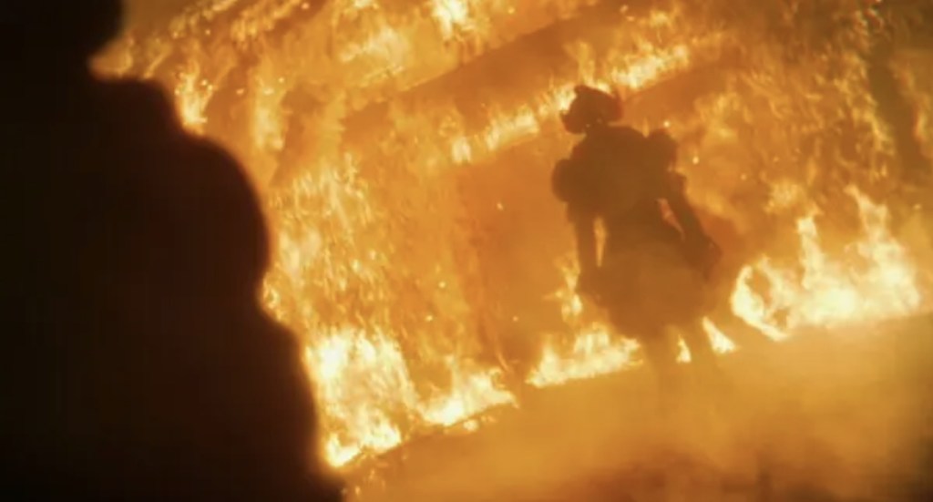 As for the fire at The Black Spot itself, it’s as savage and brutal as you’d expect it to be and it even claims the life of little Rich Santos who bravely gives his young life in order that a horrified Marge can live. While some of the aspects of the scene distract from this heart breaking act of heroism (wouldn’t Marge either cook alive or sufocate in a drinks freezer in the middle of a raging inferno?), it doesn’t stop the death of yet another one of Derry’s child cast raising those stakes even if we’d all figured out he would probably buy the farm weeks ago. But still, watching a blood-drunk Pennywise gleefully stalk through the flames proves to be the It imagery we’ve all been dying for and it’s been well worth the wait even if a lot of the adult characters have nothing much to do.