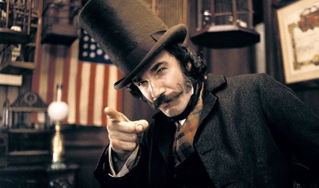 It’s here that some of the more figurative cracks in the film start to show as Amsterdam’s quest for bloody revenge gets complicated by… well, everything. Finally getting to shoot his dream project seems to have made Scorsese eager to cram as many ideas as he can into the ever-bloating screen time – however, not all of them manage to stick as deep as Bill’s blades. Overt racial warfare and vastly corrupt politics means that the film has unsurprisingly remained disturbingly prescient over the years, but the main issue with Gangs Of New York is that virtually everything co tained within the film is far more interesting that it’s main plot. Yes, we have the first instance of Leonardo DiCaprio teaming up with Scorsese, but both he and a noticably miscast Cameron Diaz seem a little at sea when surrounded by the ocean of talent around them. Liam Neeson, Brendan Gleeson, John C. Reilly, Stephen Graham, Jim Broadbent and Henry Thomas all swirl around the film while even more memorable background characters (was that a fucking cat lady?) and various political and historical subplots stand out leaving Leo’s revenge ploy looking a little weak in comparison.