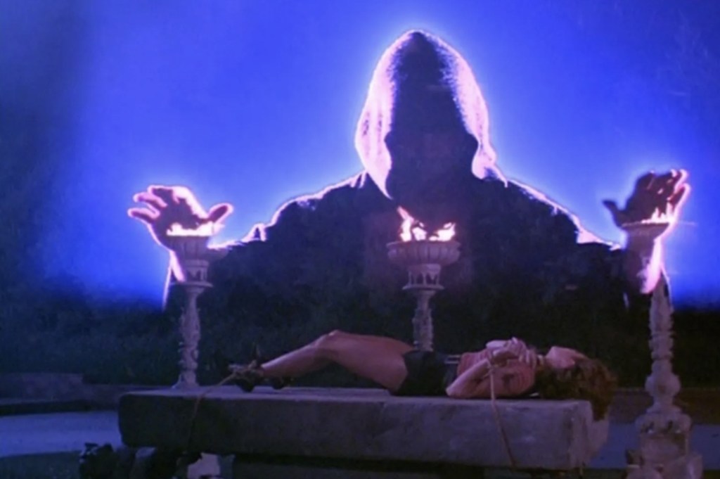 Anyone familiar with the works of Wynorski will know that what he lacks in skill, he makes up for a self aware, camp onslaught of goofy jokes, stupid monsters and hot babes. If you’ve seen his entries in the Deathstalker or Swamp Thing franchises ( both number 2s, if you were wondering), you’ll know that the less seriously you take the film, the better – after all, it’s not like Jim himself is. Holy fuck, at one point he has Stacie Randall’s ludicrously bixom Alexandra kill two guys who are blatently supposed to be Ralph and Ed from The Honeymooners, for God’s sake.